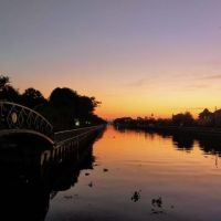 L'avenue Ramkhamhaeng longe le khlong Saen Saep, qui emmène jusqu'au-dehors de Bangkok, en bateau-taxi... A deux pas de là où je vis (vers Watthana, en pleine ville), on y accède facilement : il suffit de prendre à gauche au sortir de l'immeuble, vers le fond de l'impasse, et de traverser un petit quartier de bois et de tôle où ne passent que les piétons. Il faut se baisser pour éviter les coins ou les clous, s'excuser d'avoir à interrompre, en passant entre elles, de vieilles dames qui s'y retrouvent sur des petits bancs de fortune pour tenir boutique, tout en gardant des gosses ou des chats. Une fois que, face au mur, on a pris à gauche, puis à droite au mec bourré qui sourit à tout le monde de sa chaise défoncée, on peut traverser l'immeuble décrépit qui donne accès à la passerelle. La station de bateau la plus proche est juste en face, de l'autre côté de l'eau. On peut la rejoindre en traversant le marché qui ouvre en fin d'après-midi, puis le pont. De là, on peut aussi bien rejoindre la "montagne dorée" d'un côté que sortir de la ville de l'autre.